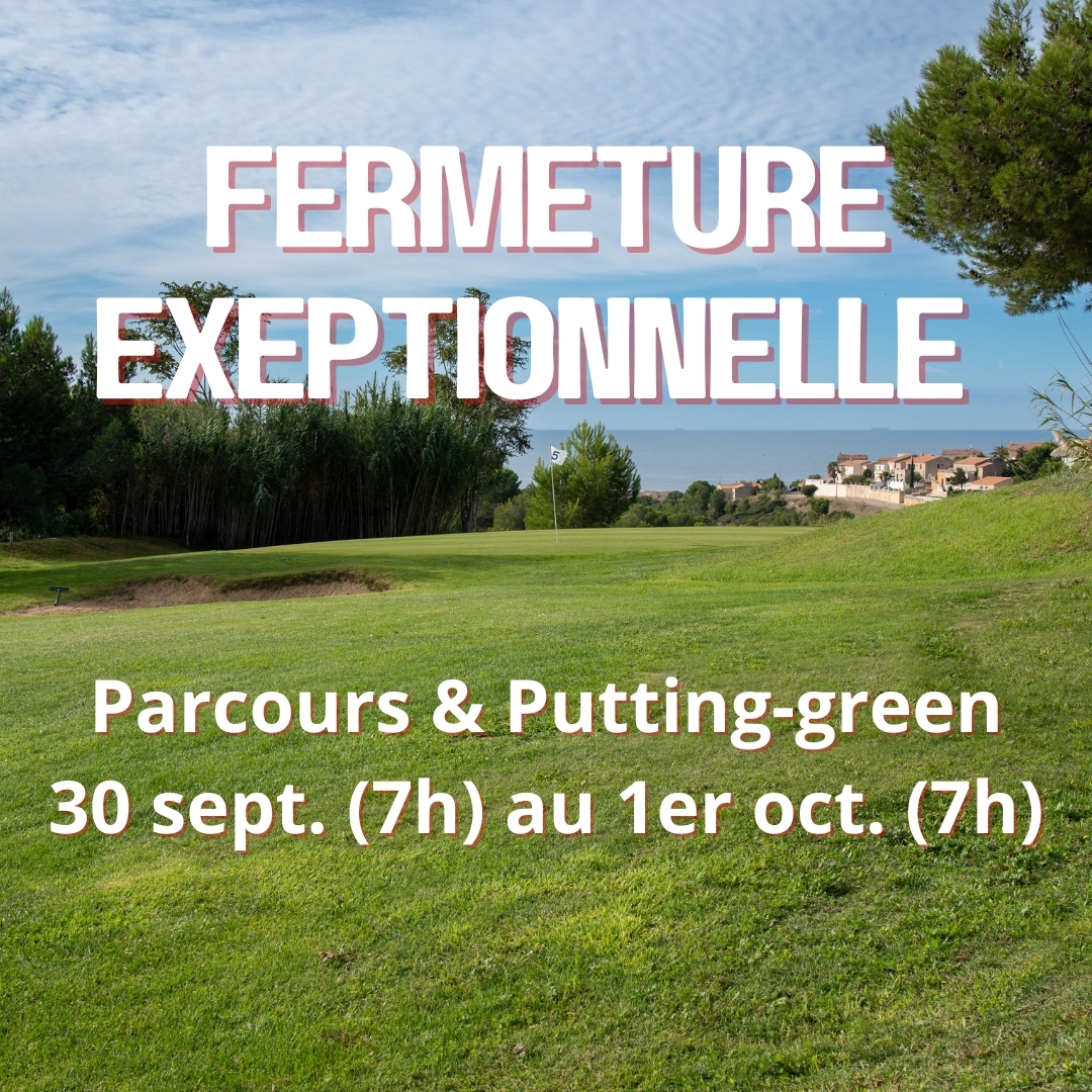 Le parcours et le putting-green seront fermés le mardi 30 septembre à partir de 7h00 pour un traitement phytosanitaire.